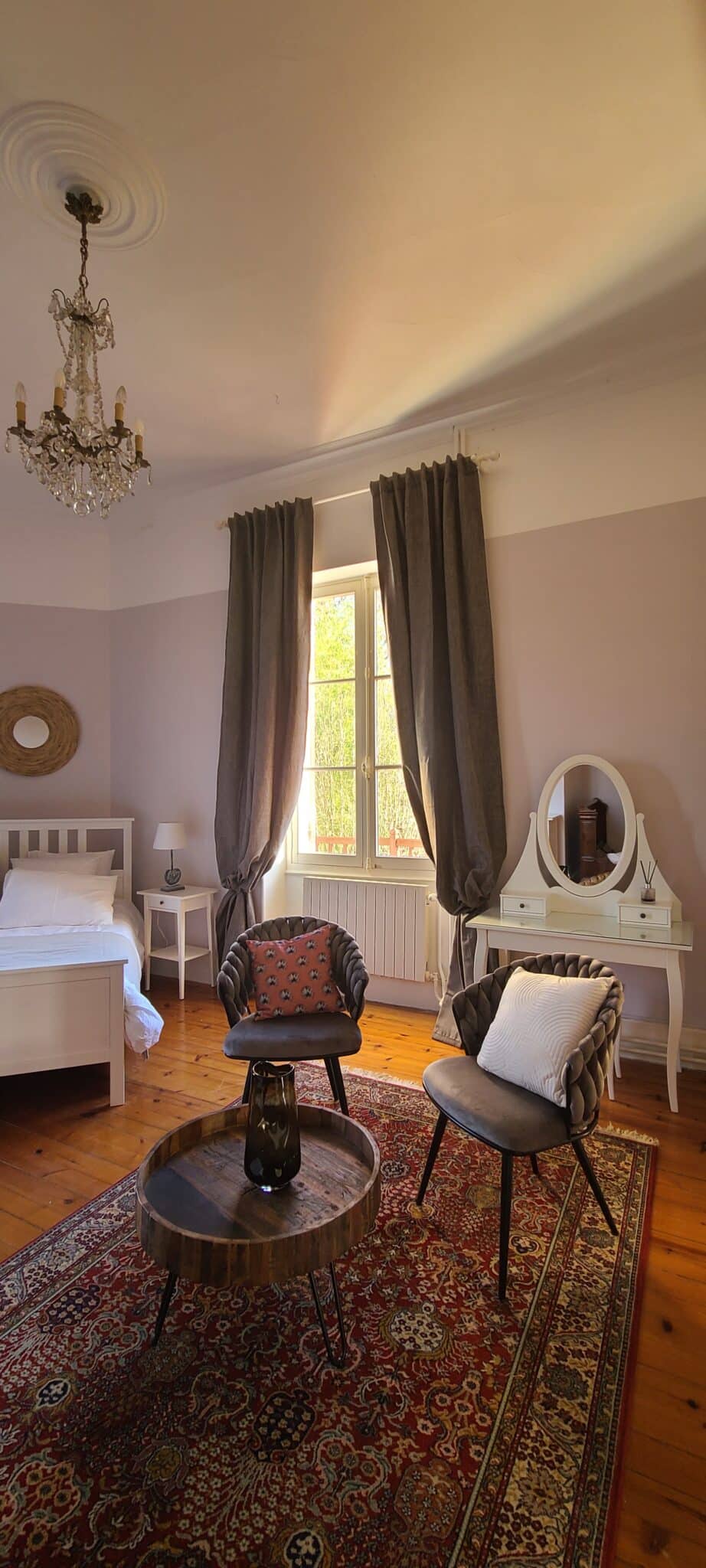 La Chambre du Moulin de Madame, d’une surface totale d’environ 30 m², est une chambre d’hôtes lumineuse et spacieuse au charme d’antan.